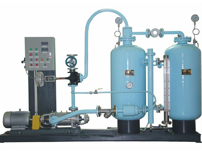 它通过罐体内的调压装置,气蚀消除装置和特制的水泵,解决了水泵的气蚀。从而实现了高温冷凝水和冷凝水回收器高能二次汽的完全闭式回收,缩小了集水容器的体积。采用自动控制系统使冷凝水能及时回收,使能量浪费到低,而且杜绝了氧腐蚀,消除了二次汽。
